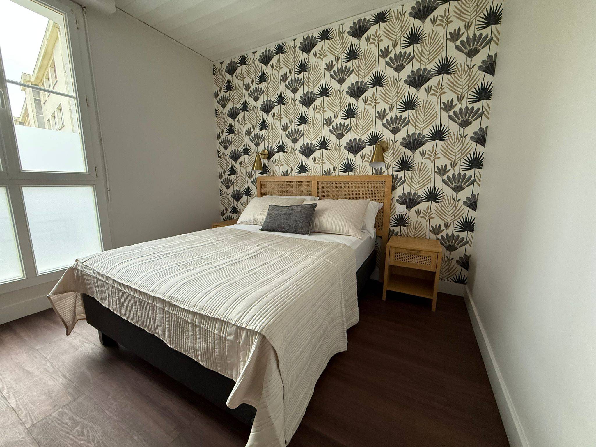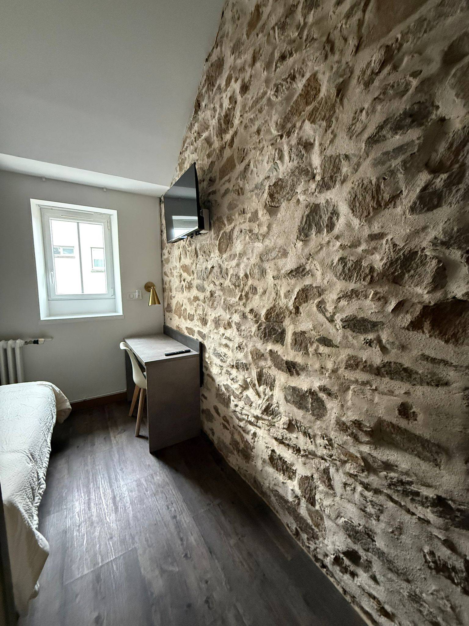 Parfaite pour un petit groupe ou une famille avec un enfant, la chambre d’hôtel Trio accueille jusqu’à trois personnes grâce à un lit double et un lit simple. Spacieuse et bien agencée, elle allie confort, calme et autonomie. Que vous soyez de passage pour un week-end ou en séjour professionnel prolongé, vous profitez d’un véritable cocon au sein de notre chambre d’hôtel à Cholet, en plein centre. Accès simple par code, ambiance chaleureuse, proximité avec les lieux touristiques… La chambre Trio est une solution idéale pour ceux qui veulent se sentir bien, ensemble, sans se marcher dessus.